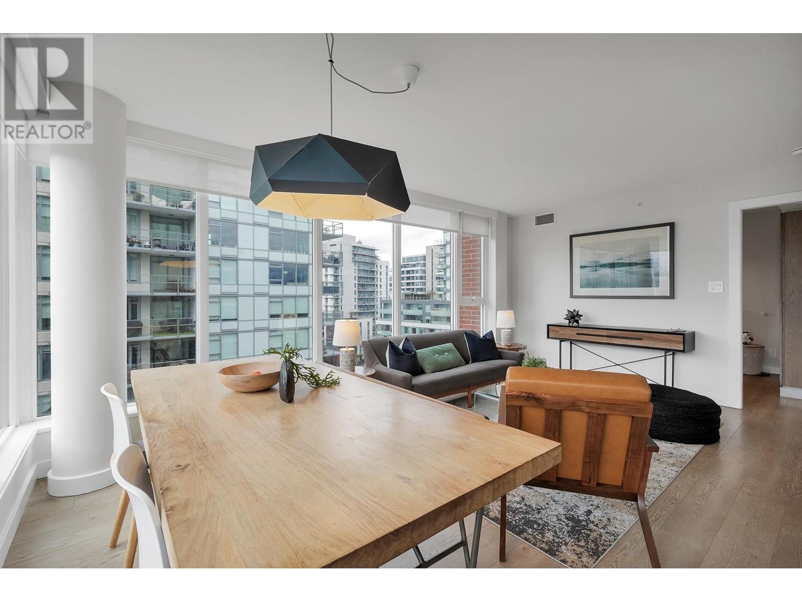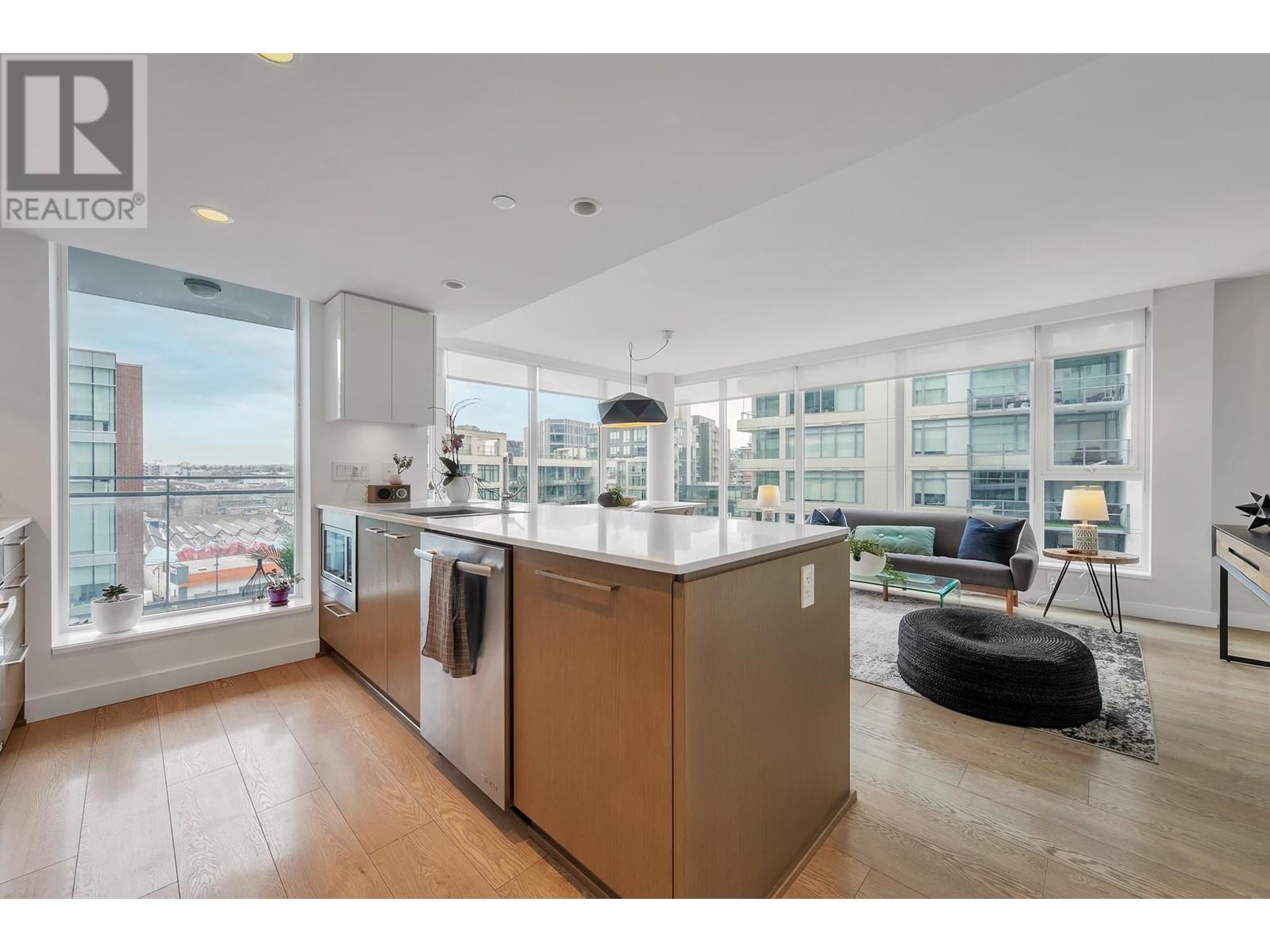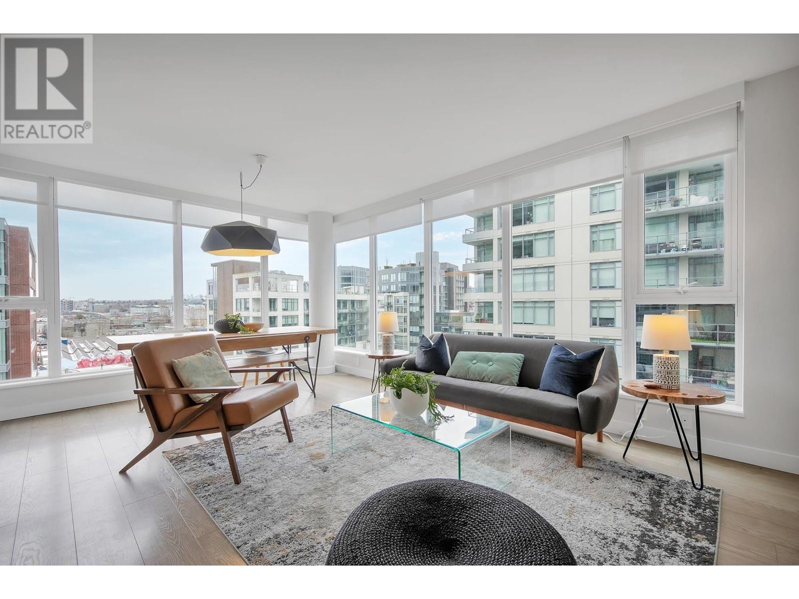 A must see – CENTRAL by Onni! Nestled in the heart of Olympic Village, this functional corner unit home, offers a seamless layout with 2 bed, 2 bath, plus den. Crafted for modern living, with south orientation, it boasts bright open concept living w/high-end appliances, air conditioning, built-in custom closets, spacious bdrm & an impressive array of amenities, including a rooftop BBQ terrace, party lounge, fitness centre, yoga studio, movie theatre & 24-hour concierge. This home has easy access to the seawall, parks, SkyTrain station, along with convenient shopping at Urban Fare & London Drugs, just around the corner. Plus, some of the city’s best cafes, breweries & restaurants – Nook, Ophelia, & Terra Breads are only steps from your door. Includes parking, storage & 2 bike storage. Open House: Sun. June 14th: 2:00-3:30 (id:62103)