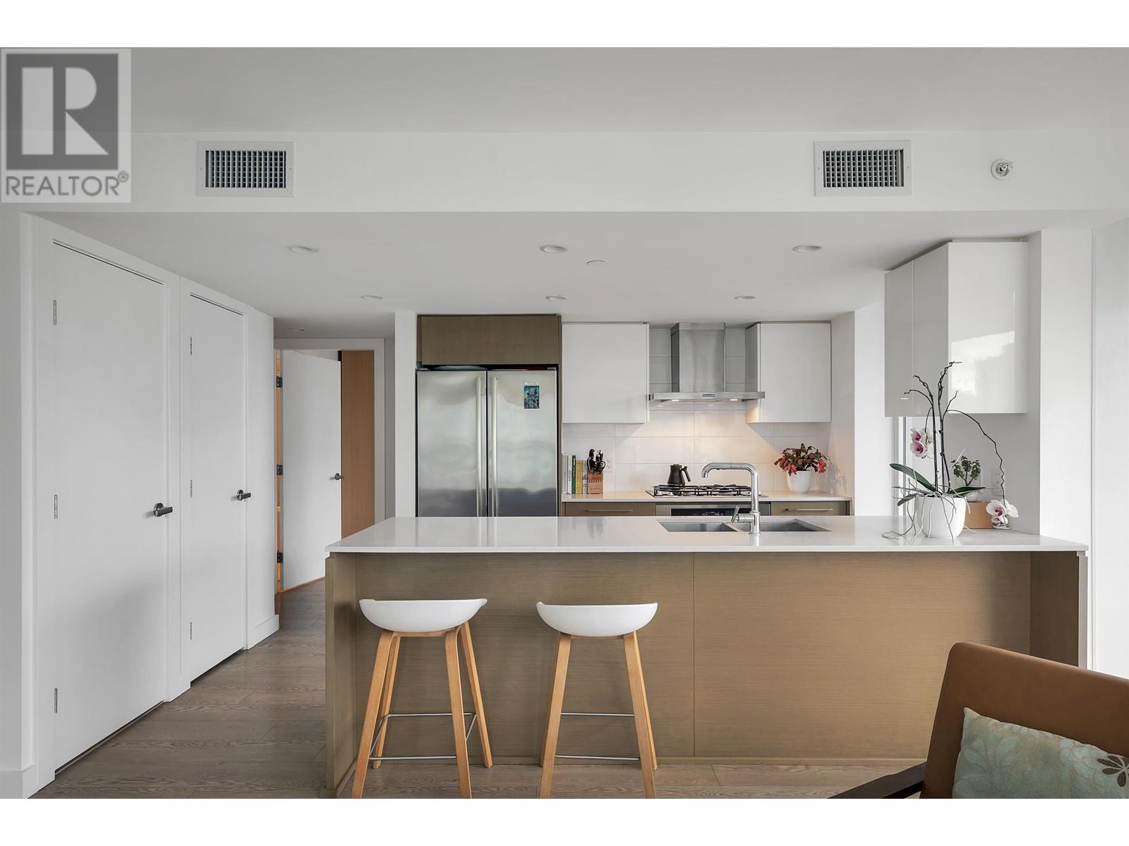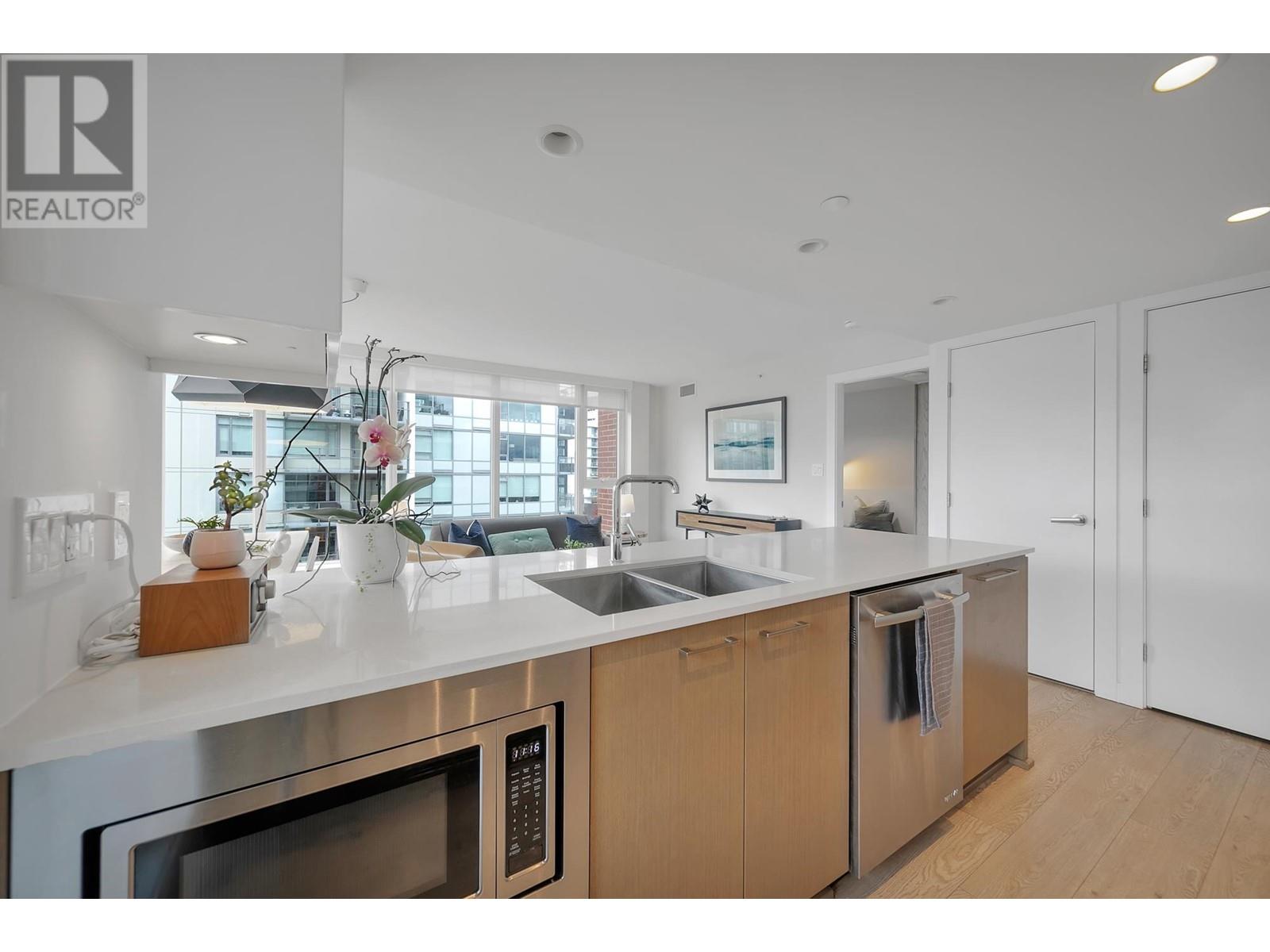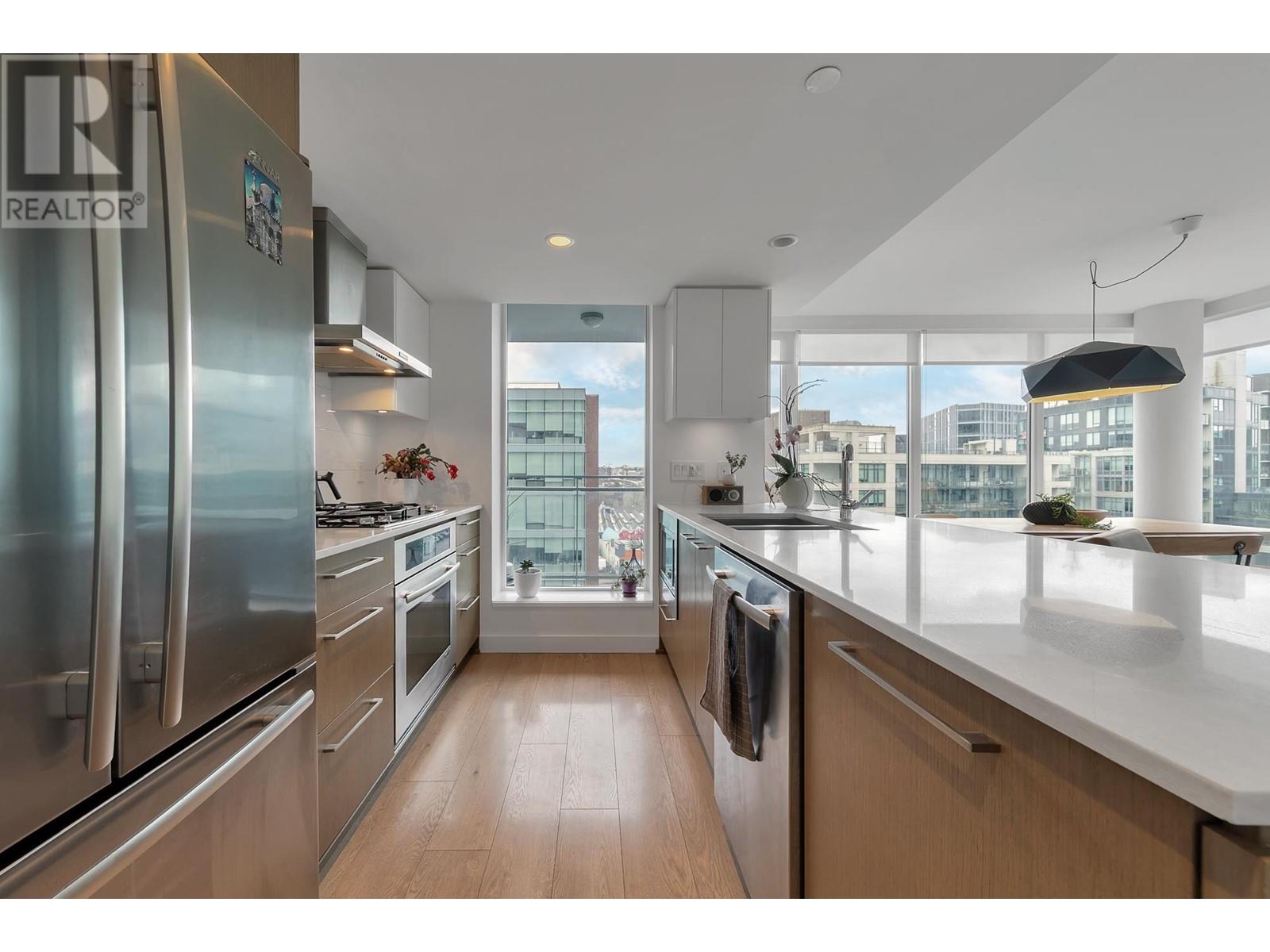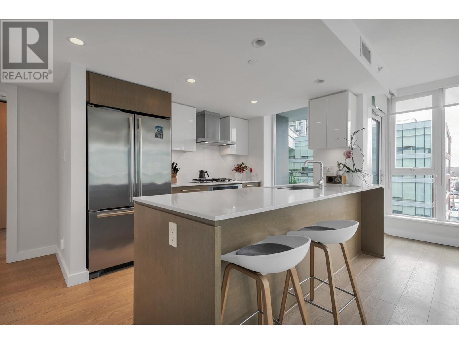A must see – CENTRAL by Onni! Nestled in the heart of Olympic Village, this functional corner unit home, offers a seamless layout with 2 bed, 2 bath, plus den. Crafted for modern living, with south orientation, it boasts bright open concept living w/high-end appliances, air conditioning, built-in custom closets, spacious bdrm & an impressive array of amenities, including a rooftop BBQ terrace, party lounge, fitness centre, yoga studio, movie theatre & 24-hour concierge. This home has easy access to the seawall, parks, SkyTrain station, along with convenient shopping at Urban Fare & London Drugs, just around the corner. Plus, some of the city’s best cafes, breweries & restaurants – Nook, Ophelia, & Terra Breads are only steps from your door. Includes parking, storage & 2 bike storage. Open House: Sun. June 14th: 2:00-3:30 (id:62103)