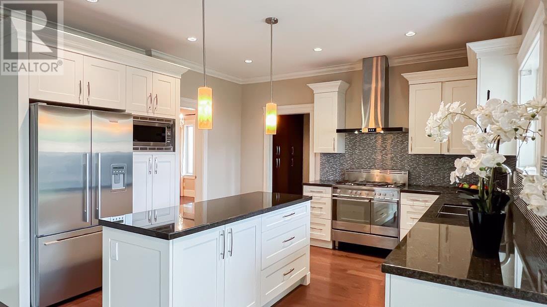 Gorgeous 3340 square ft European-built family home that harmonizes traditional and modern elegance. Great layout with 4 spacious bedrooms up + main floor bdrm & den, 4.5 baths, and large family room. Soaring ceilings, gorgeous chandeliers, and rich wood floors. Gourmet kitchen with Fisher Paykel appliances, granite counters & separate Wok kitchen. Versatile main floor suite potential with private entrance perfect for nanny, guests, or extended family. Attached double garage & secure parking gate. Sunny nicely landscaped backyard with I/G sprinkler system. Fully enclosed by a new cedar fence. This home is meticulously maintained. Shows like a new house! Close to walking/bike trails & Ironwood Plaza shopping and amenities. Call now for your private viewing. (id:62103)