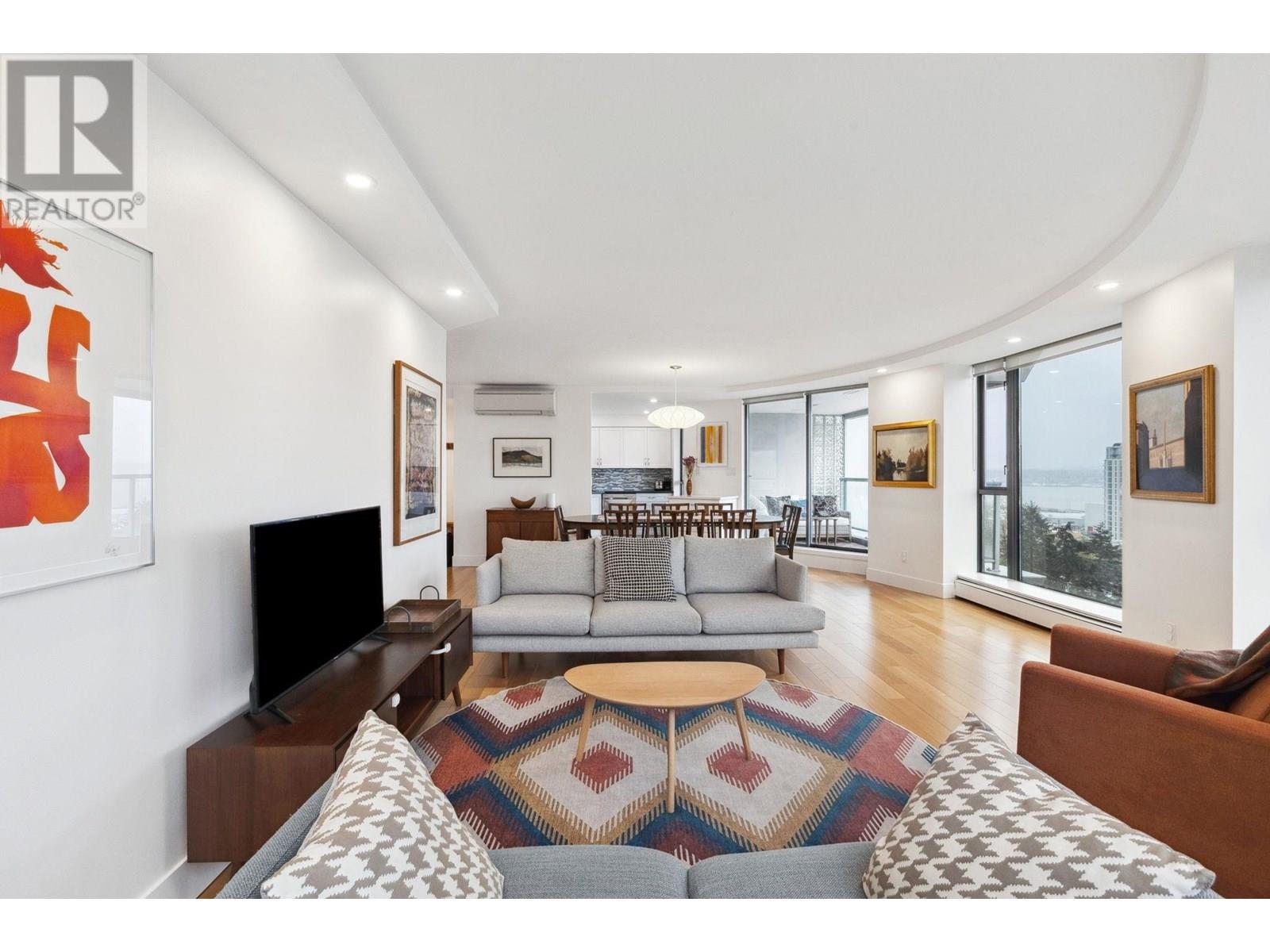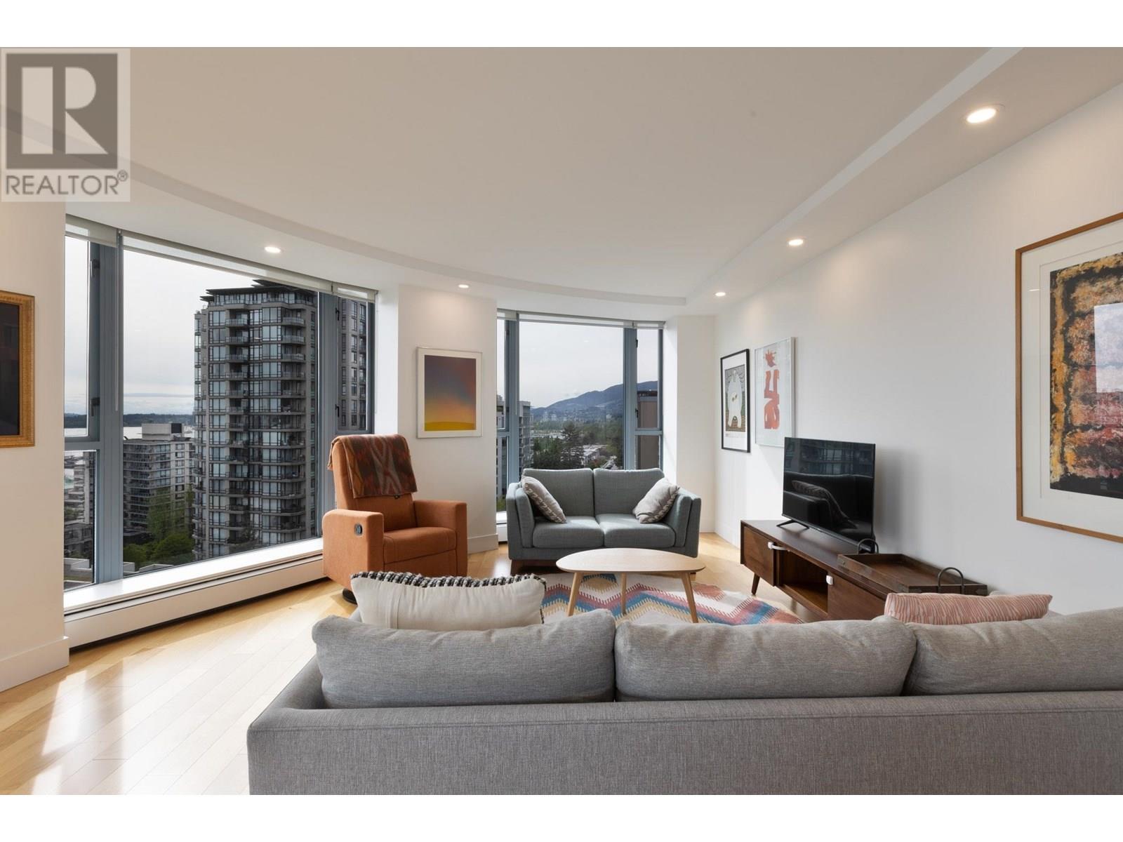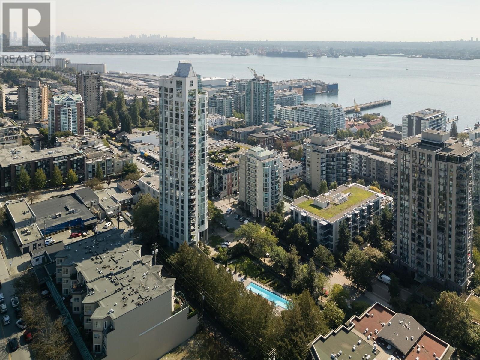 Enjoy iconic Lower Lonsdale living at the Observatory with stunning south-facing views of the harbour and downtown skyline. This extensively renovated 2 Bed/2 Bath home features a new – open kitchen, hardwood floors, smooth ceilings with pot lights, A/C, full and partial bathroom renos, UV film and roller shades, new washer/dryer, and more. Floor-to-ceiling windows wrap the home, offering incredible views from every room. Relax on your private, covered balcony or entertain in the spacious living/dining area. Resort-style amenities include an outdoor pool, hot tub, gym, and gardens. Just steps to the Shipyards, SeaBus, shops, cafes, and restaurants. Well maintained concrete building with proactive strata. Includes 2 parking stalls and 1 storage locker. OPEN HOUSE: Saturday, June 14th 11am to 1pm. (id:62103)