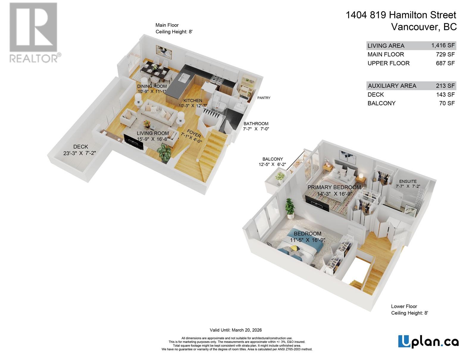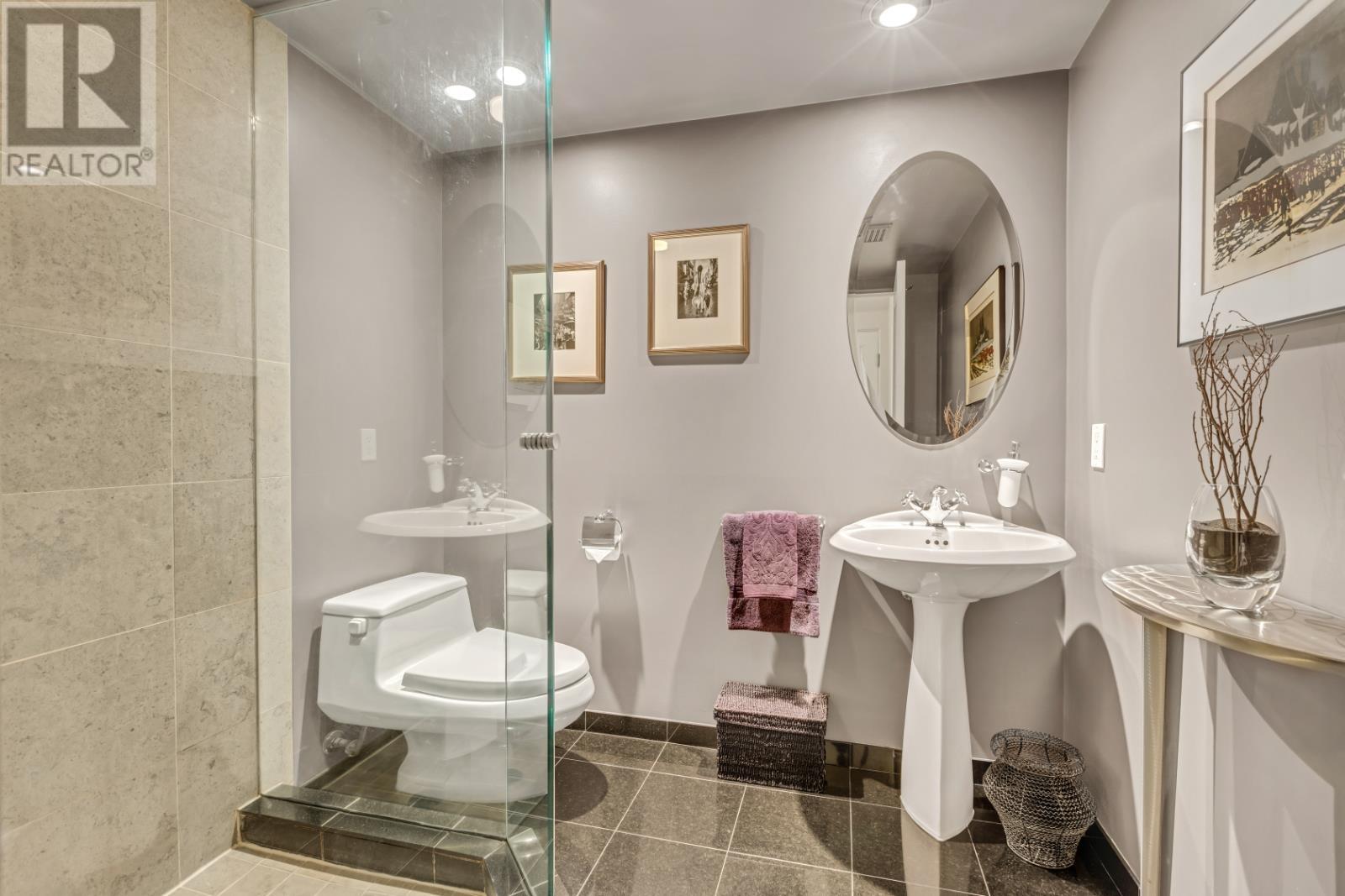 Rarely available 2-level penthouse with stunning views. Bright south exposure with floor-to-ceiling windows on both levels. Main floor features 143 Sqft patio, open-concept living with a cozy fireplace, and a convenient powder room-perfect for entertaining. Upstairs offers a spacious primary bedroom with fireplace and a full ensuite and patio, plus a large second bedroom. Includes 2 parking stalls, 1 locker, and bike locker. Steps to top restaurants, shops & all amenities. A must-see! Open House: Sunday, June 1’st, 2-4pm (id:62103)