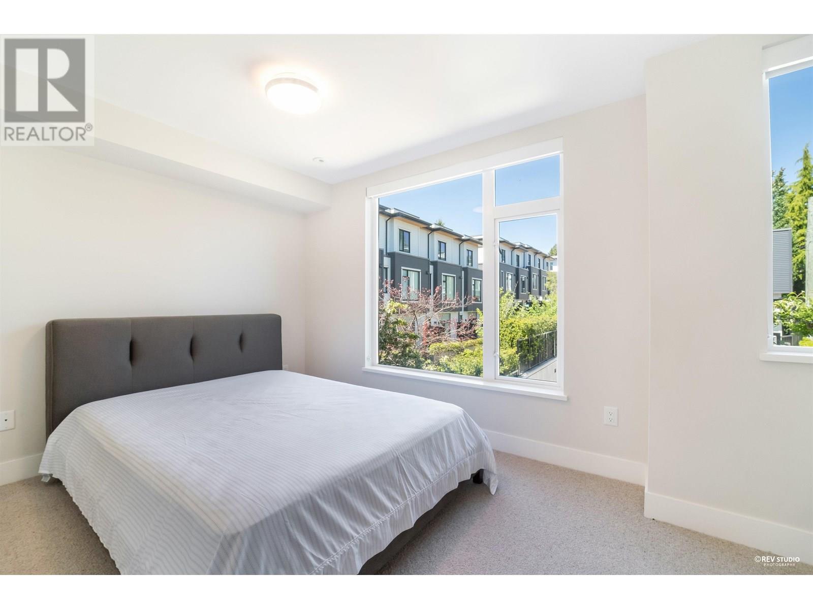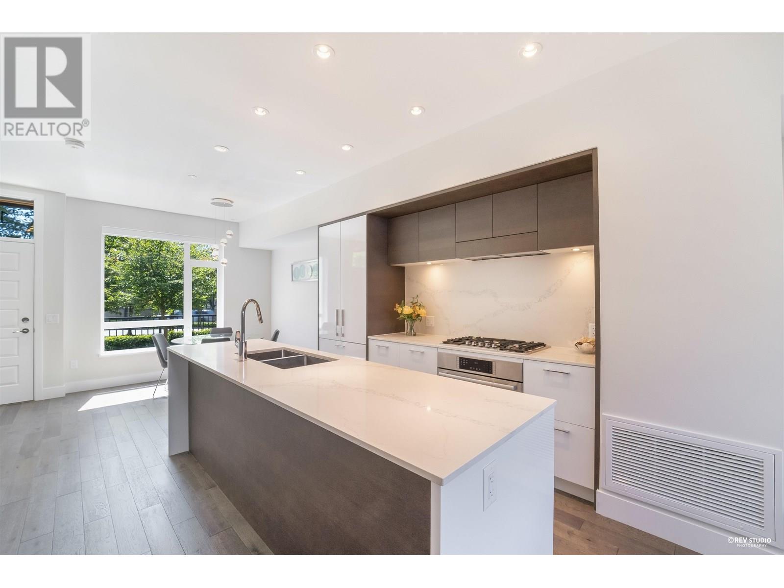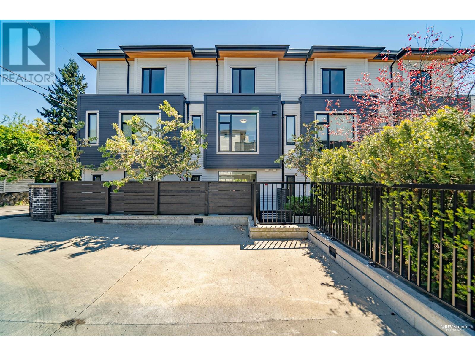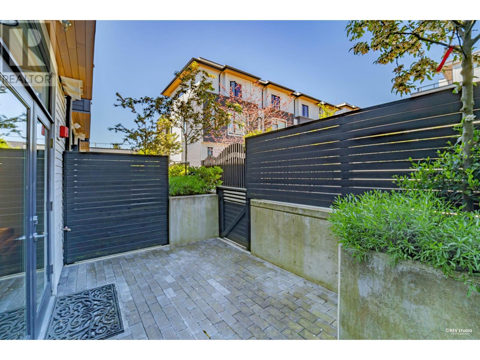 Experience luxury living in this extraordinary 4-level, 3-bedroom + big office townhouse by award-winning Intracorp, with interiors by Trepp Designs. Thoughtfully designed with spacious separate living and dining areas, a high-end kitchen featuring paneled Bosch appliances, stone countertops, redwood veneer cabinetry, and custom pantry millwork. All bedrooms comfortably fit queen-sized beds, complemented by marble bathroom counters and soaring 9′ ceilings. Enjoy ample outdoor space including a private backyard and a stunning top-floor south-facing patio with mountain, greenbelt, and partial Fraser River views. Quietly located on the SOUTH/NORTH-facing side of 59th Ave and within the sought-after Churchill Secondary (IB) catchment-Must-see! 2 Parkings 1 locker (id:62103)
