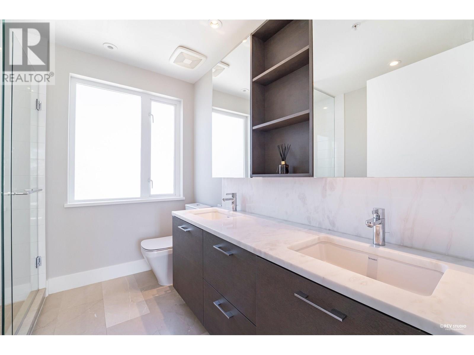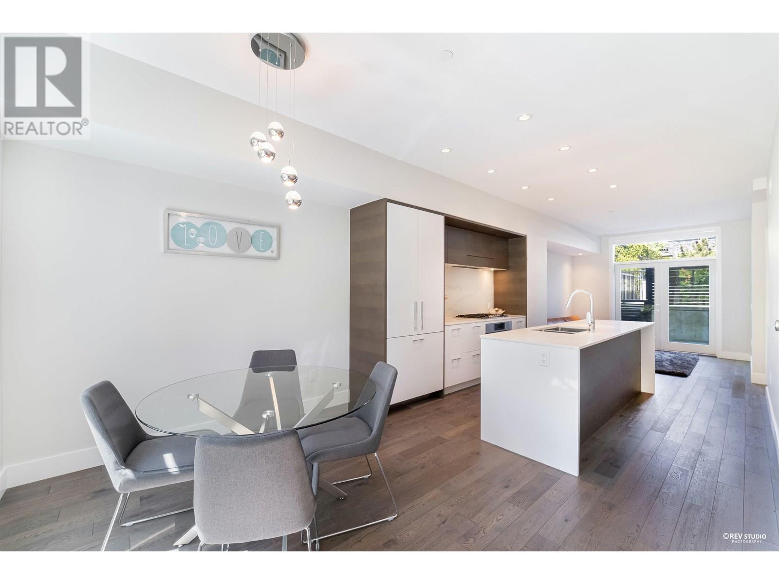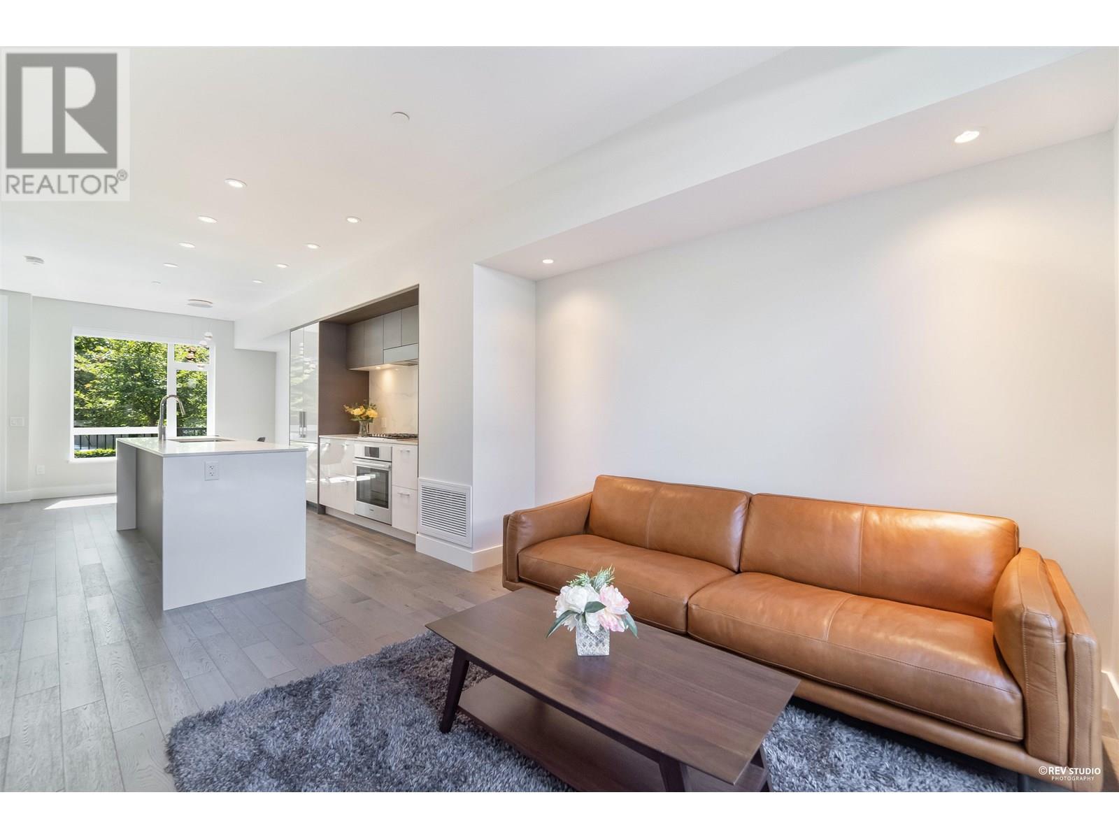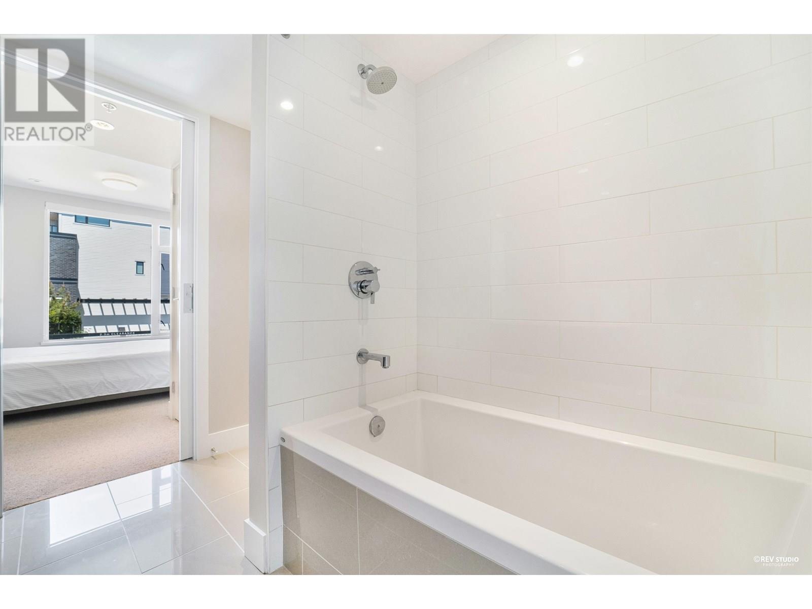 Experience luxury living in this extraordinary 4-level, 3-bedroom + big office townhouse by award-winning Intracorp, with interiors by Trepp Designs. Thoughtfully designed with spacious separate living and dining areas, a high-end kitchen featuring paneled Bosch appliances, stone countertops, redwood veneer cabinetry, and custom pantry millwork. All bedrooms comfortably fit queen-sized beds, complemented by marble bathroom counters and soaring 9′ ceilings. Enjoy ample outdoor space including a private backyard and a stunning top-floor south-facing patio with mountain, greenbelt, and partial Fraser River views. Quietly located on the SOUTH/NORTH-facing side of 59th Ave and within the sought-after Churchill Secondary (IB) catchment-Must-see! 2 Parkings 1 locker (id:62103)