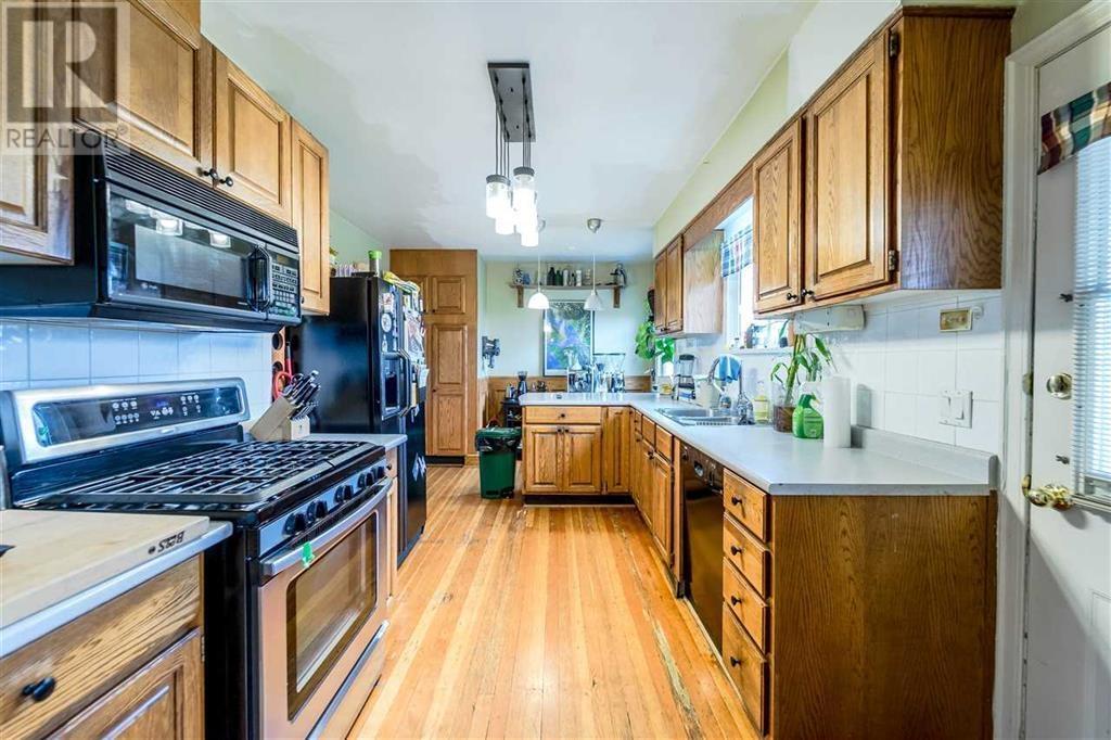 Location. Location. Location. This 6500 Sq. Ft. property with Sweeping views south from the large deck of the Fraser River and beyond, is located in the heart of the New Westminster’s West End. Walking distance to Sky train, Lord Tweedsmuir Elementary, Grimston Park, NWSS and St Thomas Moore colligate. A high street location in a delightful family neighborhood. Solid home with original hardwood floors, Gas fireplace, newer main bath, vinyl windows, furnace, and hot water tank. The south facing rear yard has a solid older single garage off lane. A large covered parking under deck. Loads of additional parking for your RV or boat. Dining room has been converted to a third bedroom. Basement is unoccupied. Boasting another kitchen, living room fourth bedroom and common laundry. Hold and build (id:62103)