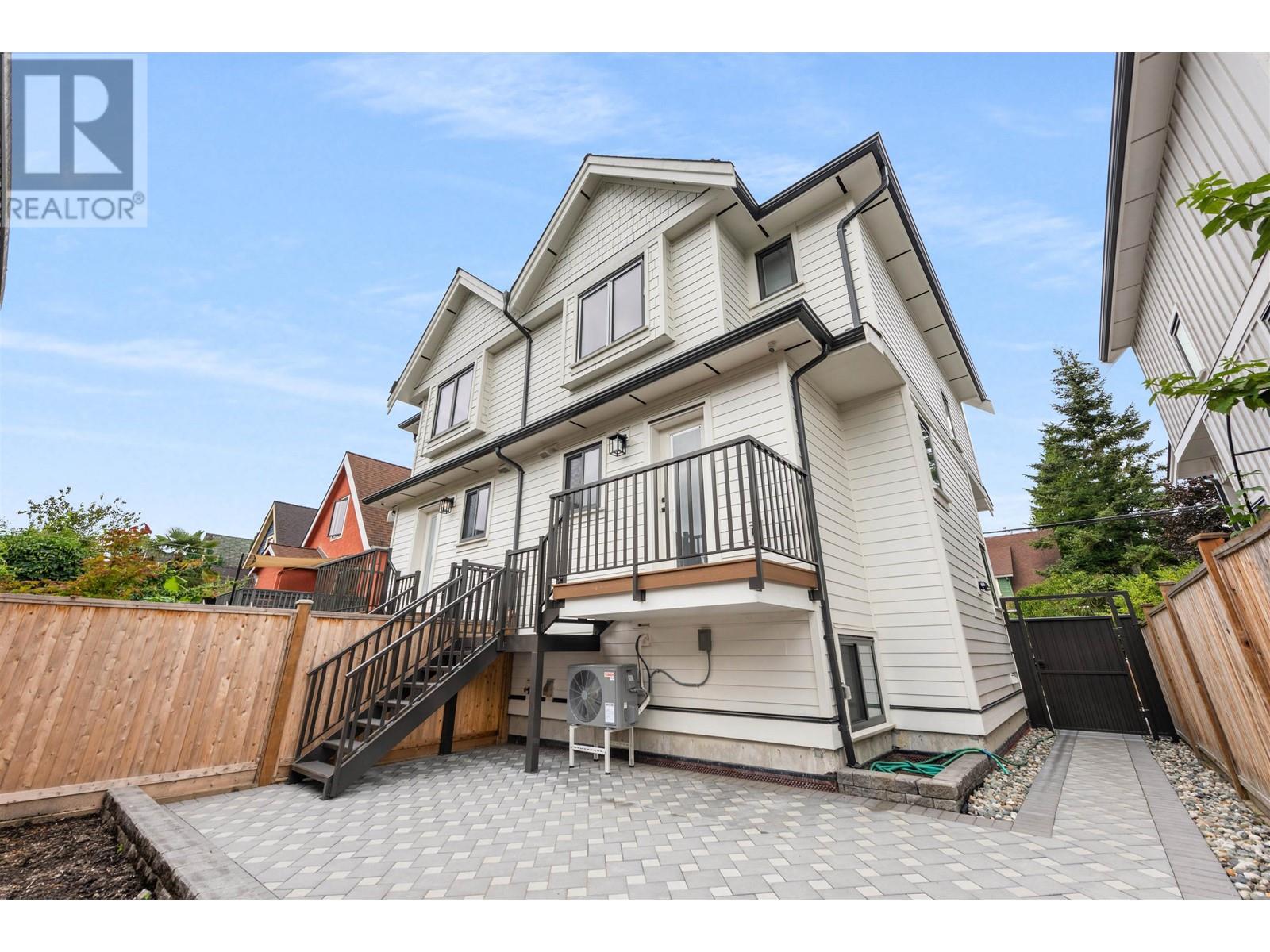 WHY PAY STRATA FEES when you can own a brand NEW SIDE-BY-SIDE 1/2 DUPLEX just steps from COMMERCIAL DRIVE & minutes from the DOWNTOWN core?!? This home features gorgeous, HIGH END FINISHINGS throughout, including ENGINEERED HARD WOOD flooring, RADIANT in-floor heat, ON-DEMAND hot water, A/C & HRV, custom built-in CLOSETS, & more. The kitchen features beautiful QUARTZ counter tops & SINGLE-SLAB QUARTS backsplash, a GAS RANGE, & FISHER & PAYKEL appliances. Upstairs you will find 3 bedrooms with VAULTED CEILINGS, while downstairs offers a DEN that’s perfect for a HOME OFFICE. Enjoy summer BBQ’s in your FULLY FENCED and PRIVATE backyard with GAS LINE & HOT & COLD water. Just steps to XPEY ELEMENTARY and Templeton SECONDARY schools. Room for 2 PARKING including single GARAGE wired for 220 EV. (id:62103)