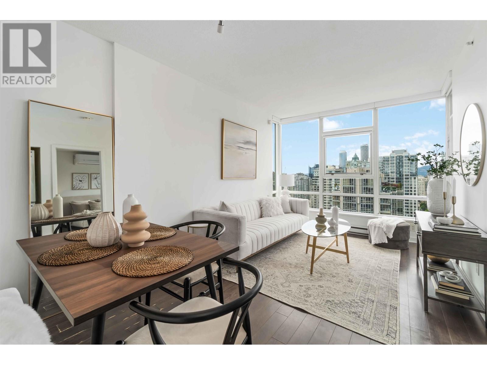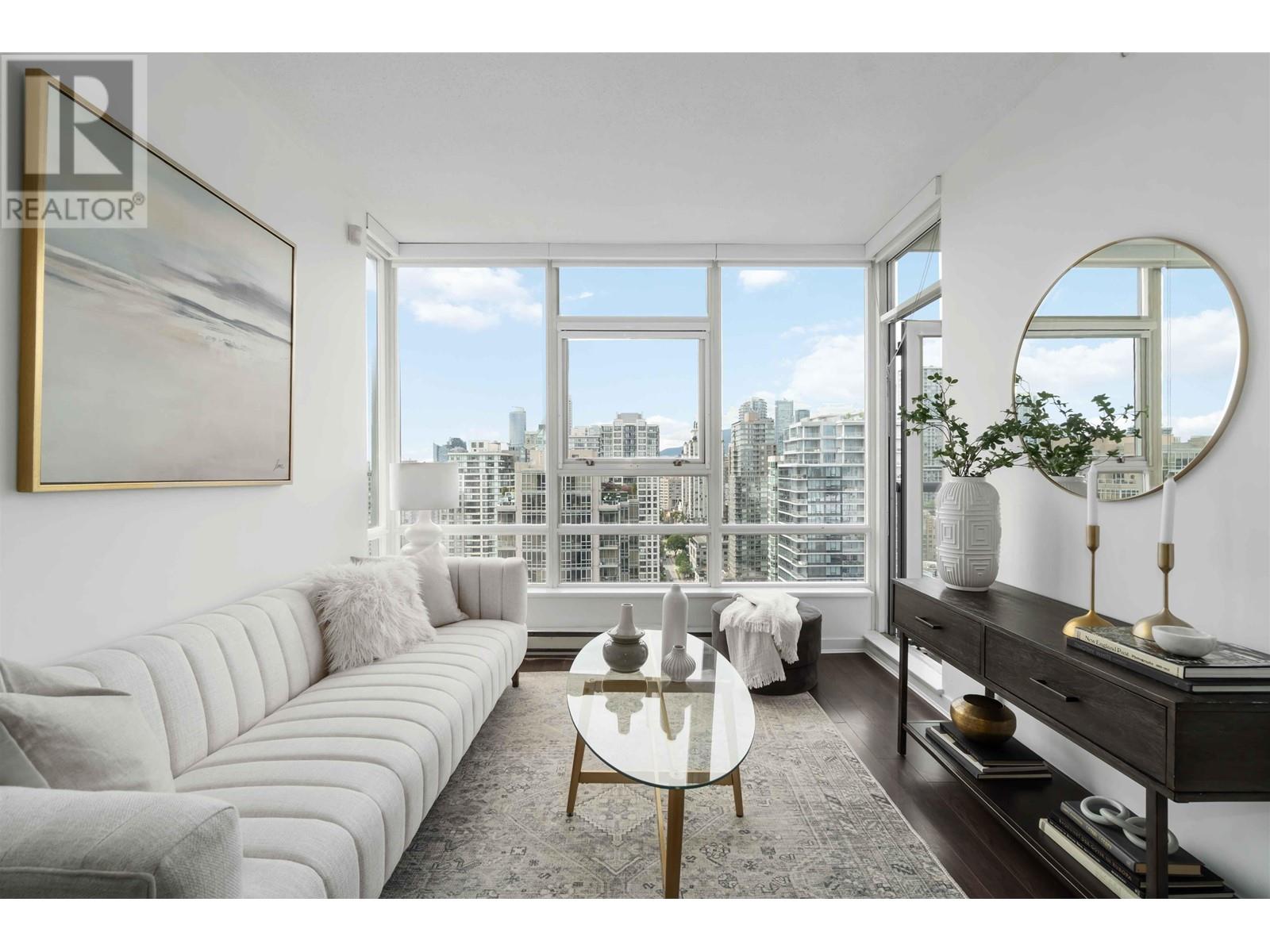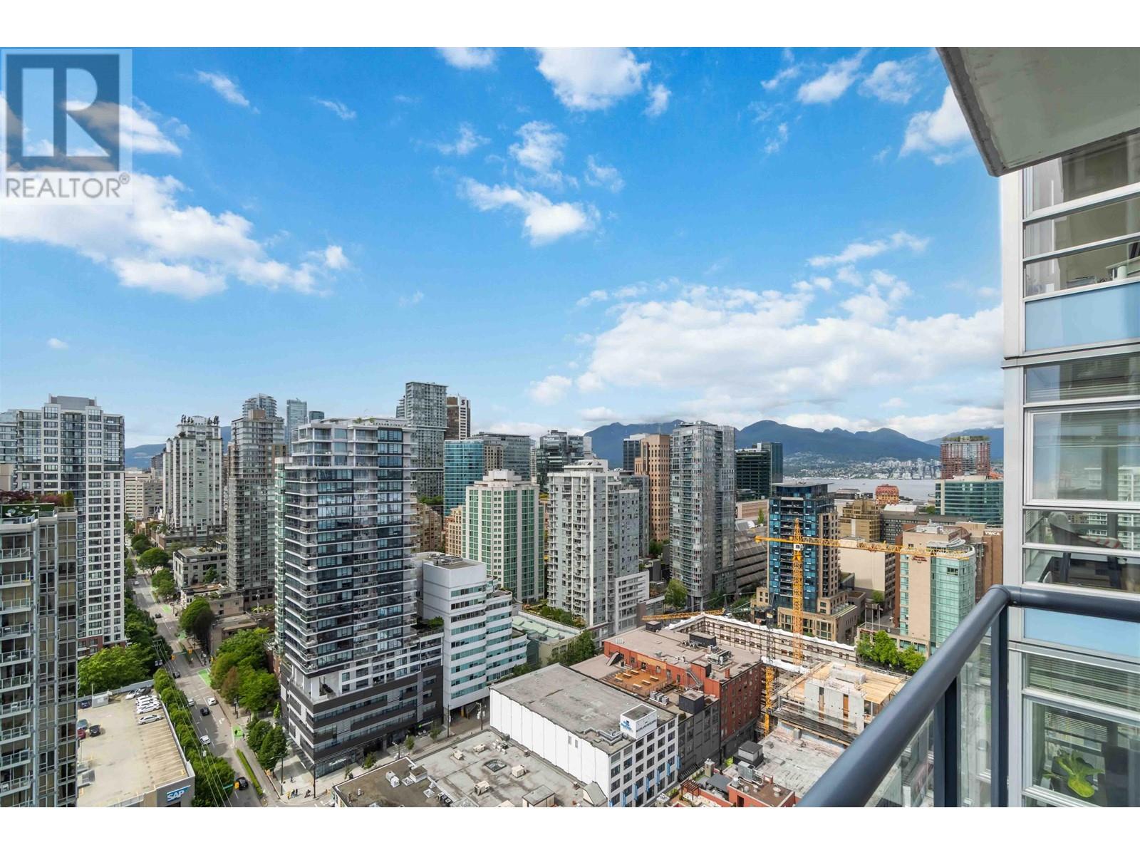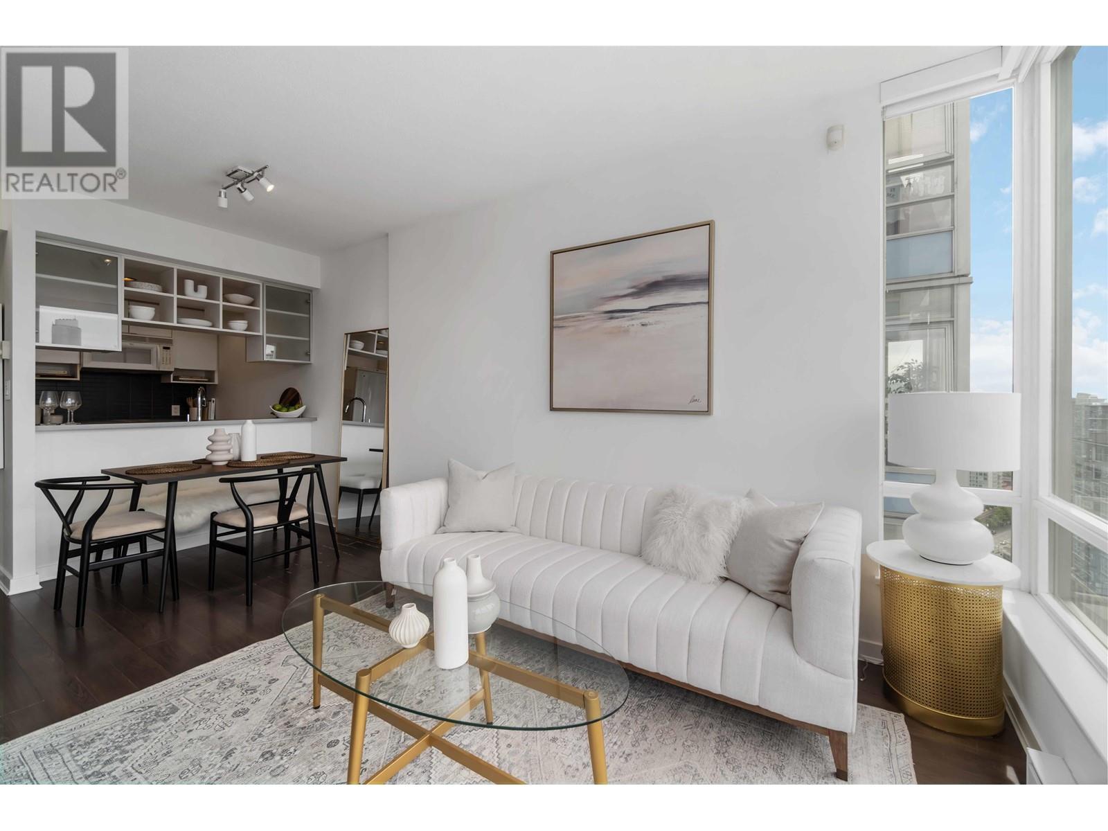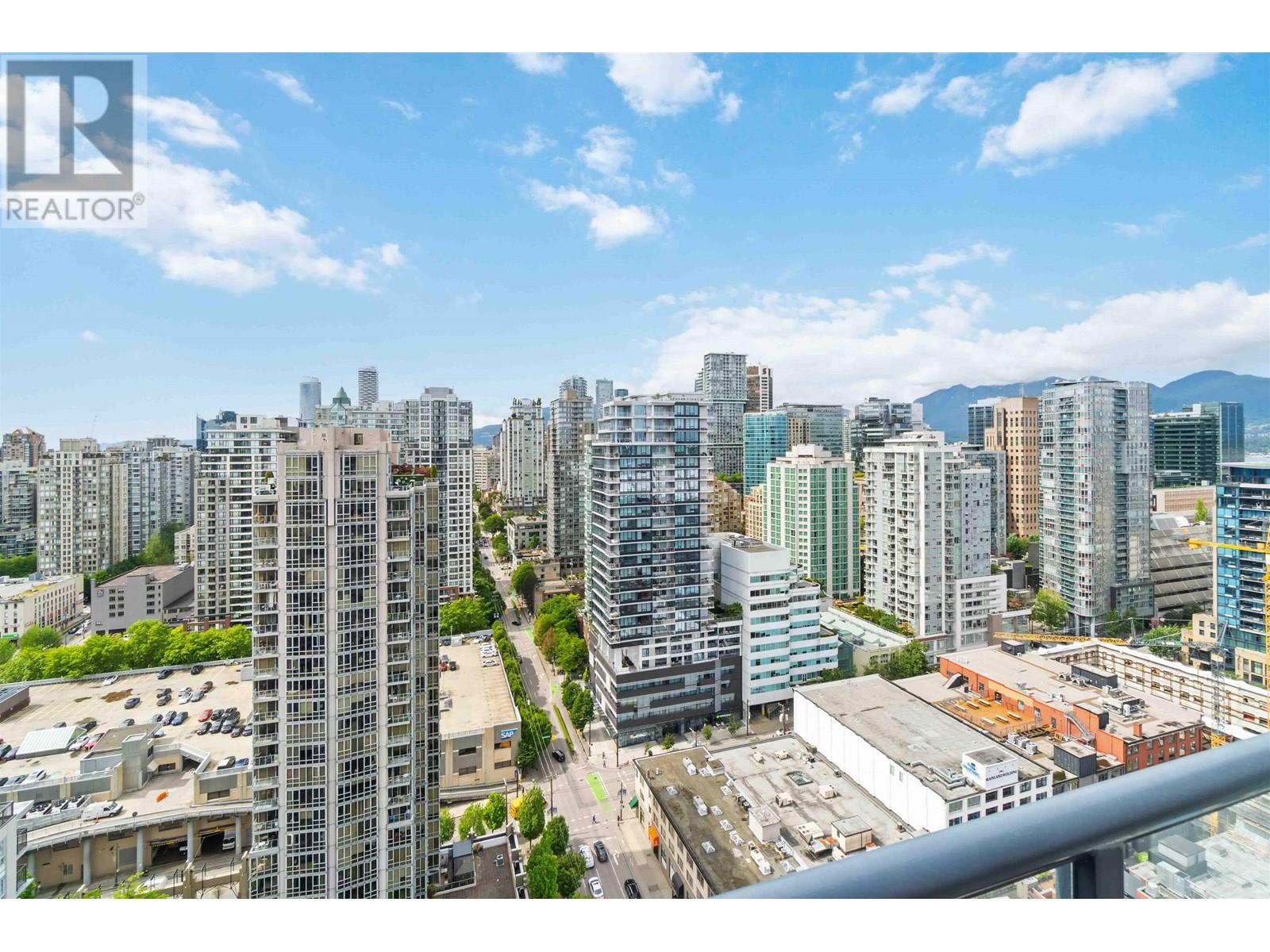 VIEW Property! Welcome to the ICONIC MAX by Concord Pacific. In the heart of VANHATTAN-Yaletown at your doorstep. This gorgeous & rarely available 35th floor 1-bedroom checks all the boxes: 1 parking, generous bedroom, large den, full bath, flex space for office/guests, ample closets, A/C in unit! Chef´s kitchen with gas cooking, granite counters & tons of cabinets. Full appliance package. AMAZING WATER, MOUNTAIN & CITY LIGHTS VIEWS from bedroom, balcony & living room. Beautiful flooring. Strata fee includes gas, gym, party room, sauna, pool & doorman. Pets & rentals allowed. First Showings at the OPEN HOUSE: May 31 & June 1, 2-4 PM. (id:62103)