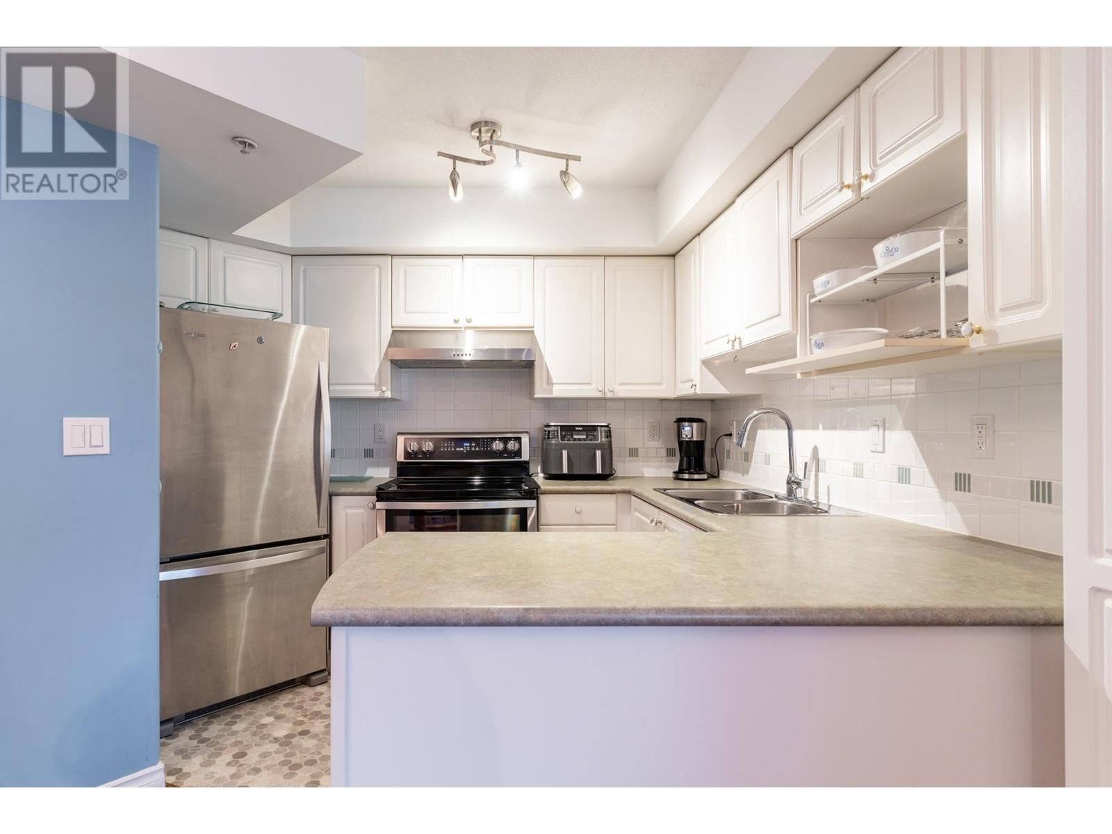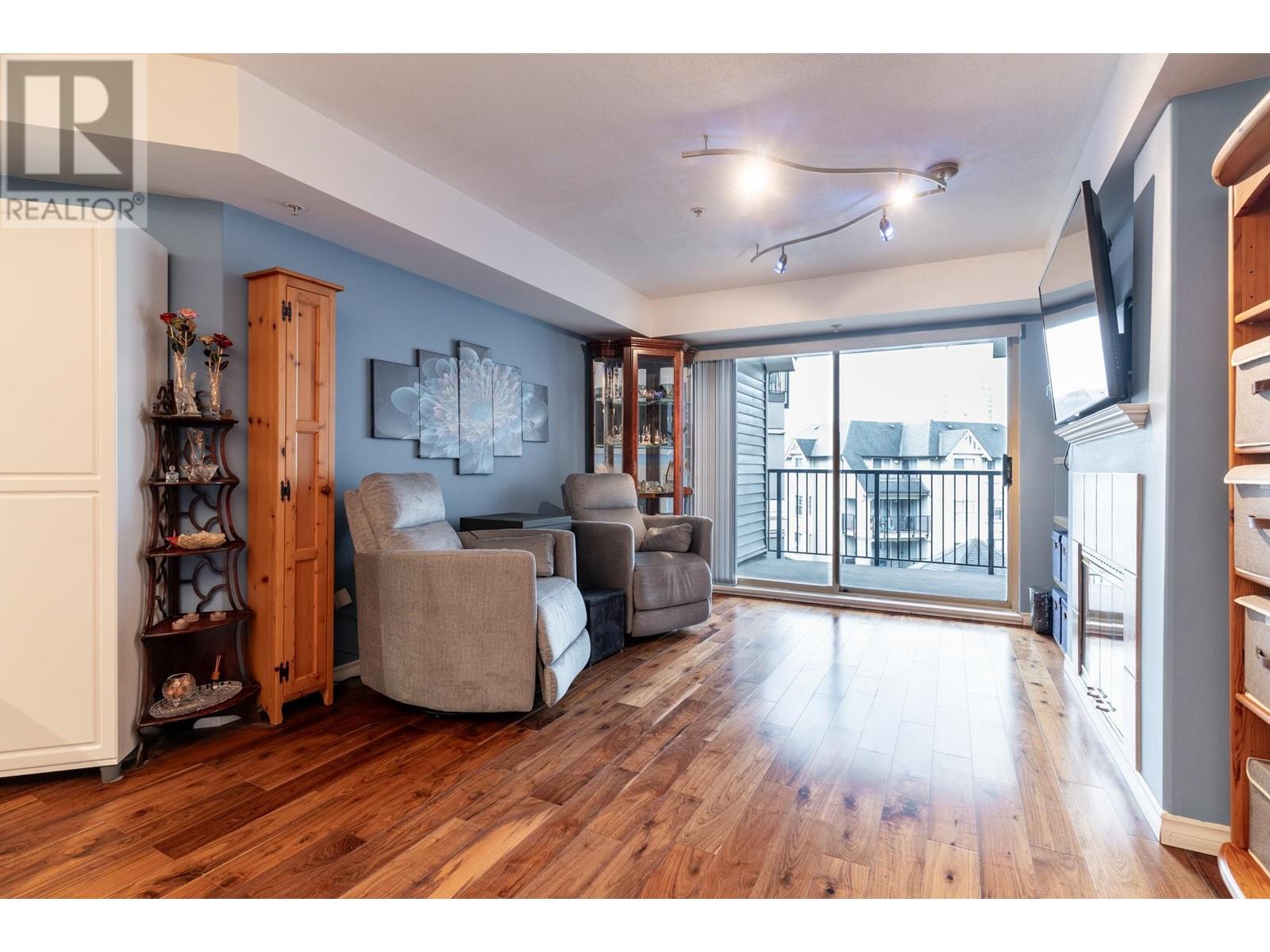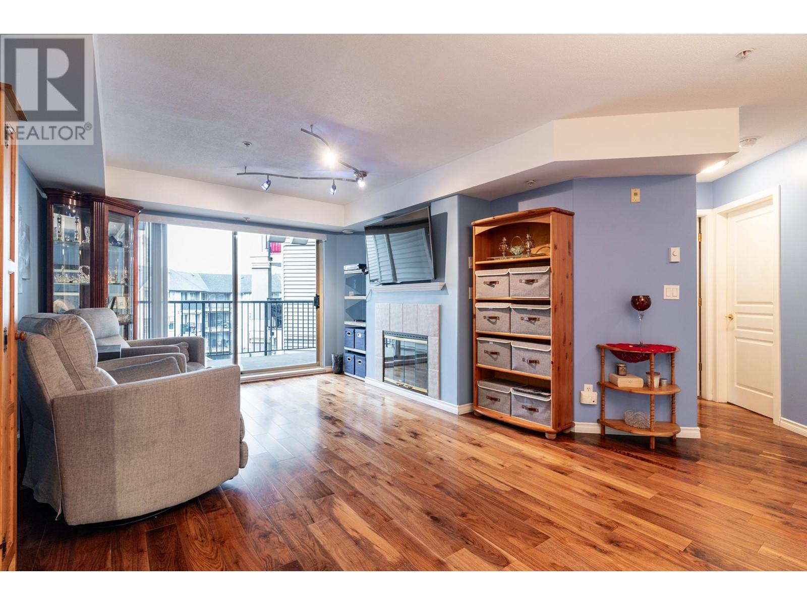 Bright & spacious, & move-in ready! This beautiful one bed, one bathroom upper floor home offers the perfect blend of comfort & style in the heart of New Westminster. Step inside to an inviting open concept layout featuring an oversized primary bedroom w/a large walk-in closet, cozy gas fireplace, in-suite laundry, & engineered hardwood flooring. Updated floors in the bathroom, kitchen, & new carpet in the master. Enjoy your morning coffee on the charming patio overlooking the courtyard. Secure underground parking, storage, bike room, exercise centre, and beautifully landscaped garden courtyard. Steps away from New Westminster Quay, boardwalk, shopping, Skytrain, and more. A well maintained, pet-friendly building with a proactive strata and caretaker. **OPEN HOUSE** SAT June 14th 2pm-4pm (id:62103)