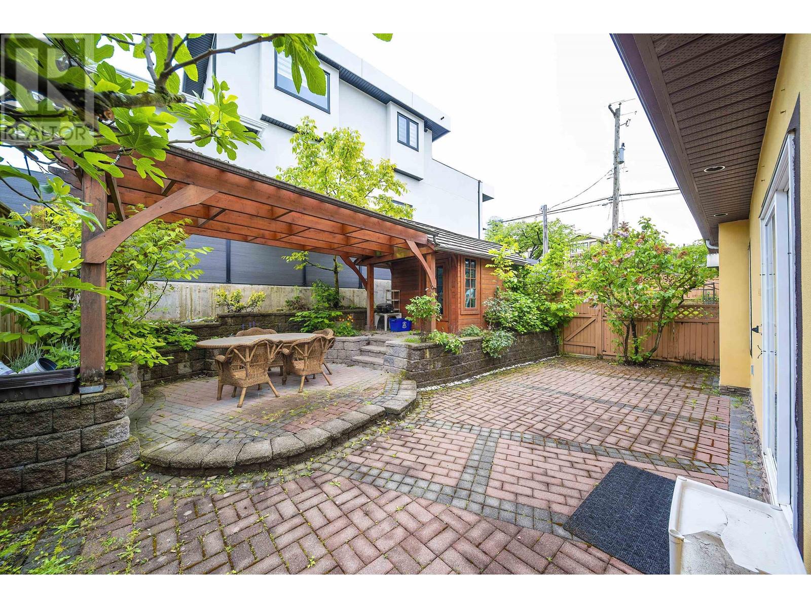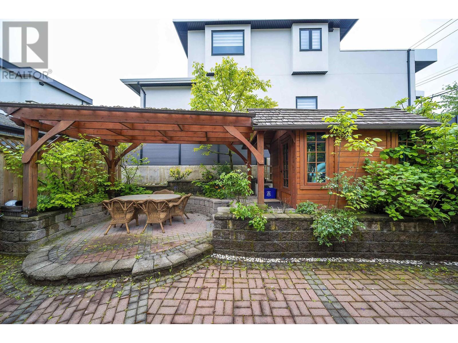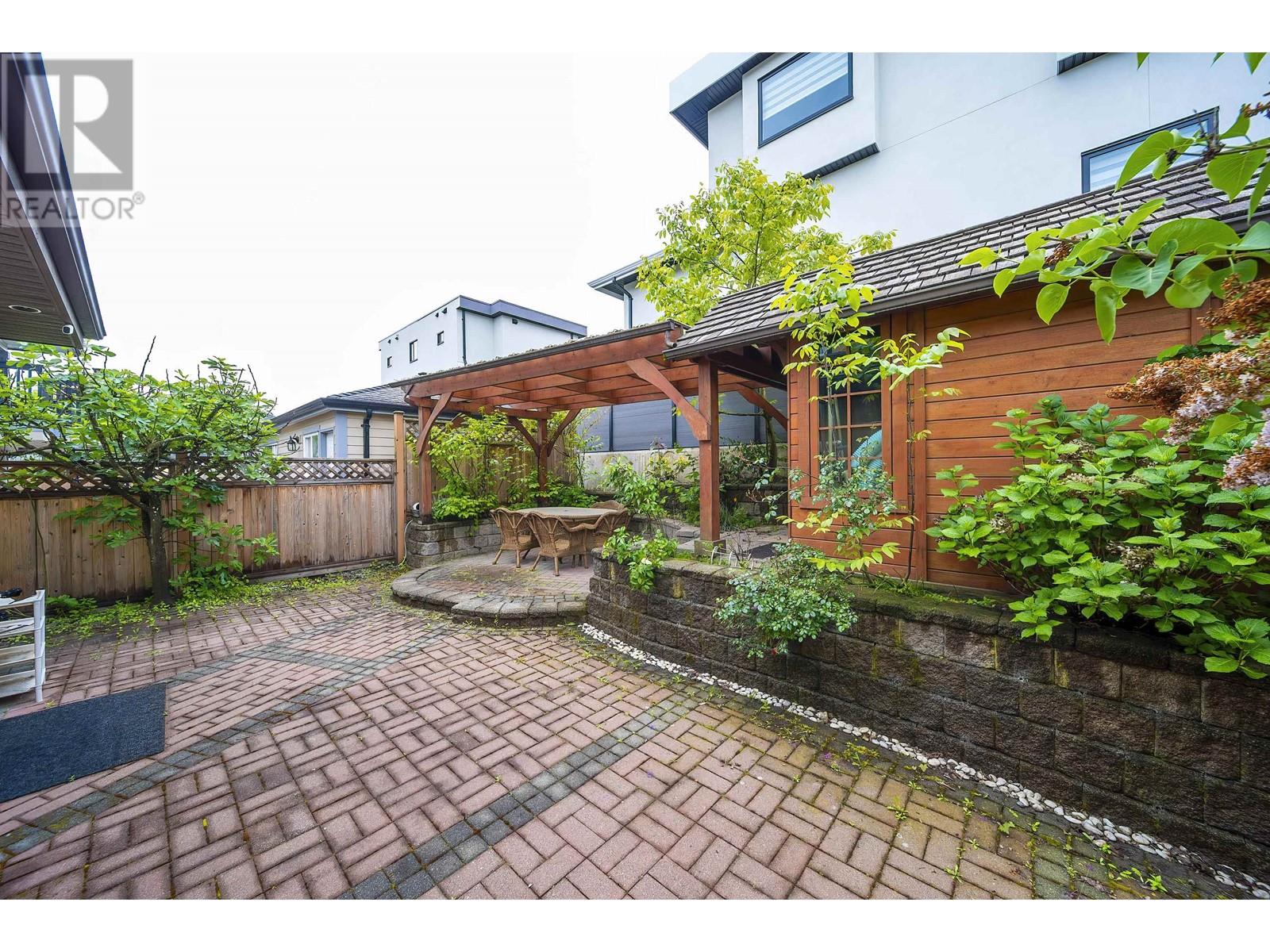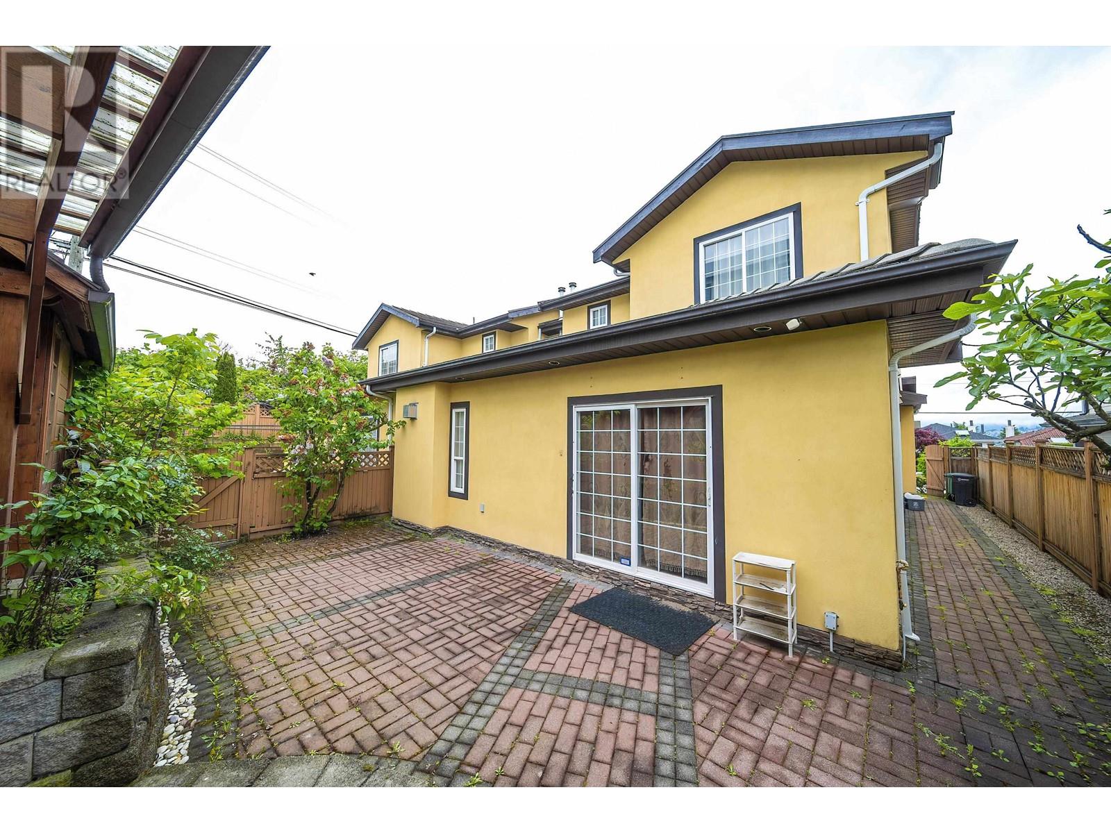 Spotless, high-end half duplex tucked away in a quiet and sought-after neighbourhood, just minutes from Metrotown shopping and transit. This custom built home features cozy living and dining areas with recently updated German hardwood floors, radiant in-floor heating, and elegant crown mouldings. The gourmet kitchen boasts granite countertops and stainless steel appliances. Enjoy full privacy in the beautifully landscaped south-facing backyard with a pergola and extra storage shed. A versatile room on the main floor with a window can serve as a study, family room, or extra bedroom. Spacious laundry room with ample storage. Upstairs offers three generously sized bedrooms. Open House: May 24 & 25, 2-4 PM. Offers to be presented 27th May 2025 at 6 pm. (id:62103)