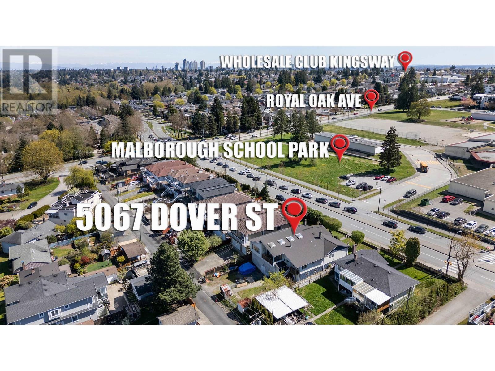 Welcome to 5067 Dover St. This is a one of kind property. Built in 1955 and added onto a few times throughout the years it is a massive 5394 sqft rancher with unfinished basement(2607 sqft on the main floor!). It sits on a large 18.29m x 42.37m lot with a rear lane that offers many re-development opportunities. The home is in need of a full renovation, but has a solid and large footprint to work with. The location is superb with Marlborough Elementary School directly across the street, Marlborough Park just steps away, Walking Distance to Deer Lake and Bonsor Recreation Complex, and a fifteen minute walk to two Skytrain stations, Royal Oak and Metrotown, and a ten minute walk to Metrotown Mall. (id:62103)