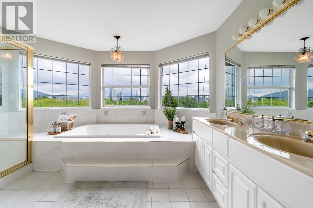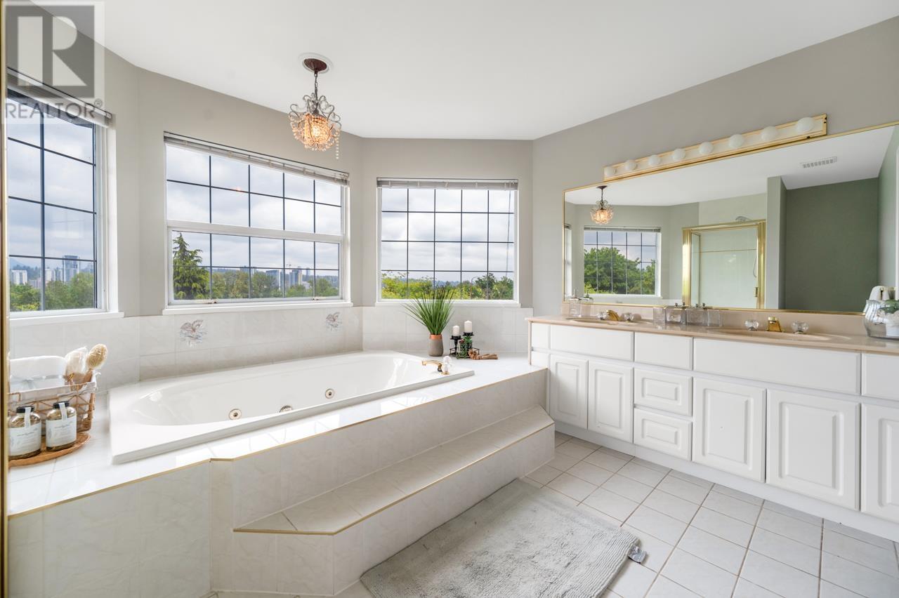 INCREDIBLE VALUE! Custom European Home on a Cherry Blossom-lined street in The Crest, Burnaby! Discover this 8-bedroom family haven on a 7500+ SF lot with modern update throughout expansive rooms and living areas w/extended ceiling heights. Features open-concept kitchen, built in stereo system, stunning Mountain & City views, and a triple garage with a 25-ft+ driveway perfect for a camper van or trailer. Main floor bedroom and full bath offer guest flexibility. The tree-line in backyard provides exceptional privacy. Plus, a 2BR suite mortgage helper below. Just 5 mins to groceries like Costco/Choices Market, Lougheed/K-Town City Center, top-rated schools, and easy access to Hwy 1, SFU, and more. A gem for families seeking for space and quality living! (id:62103)