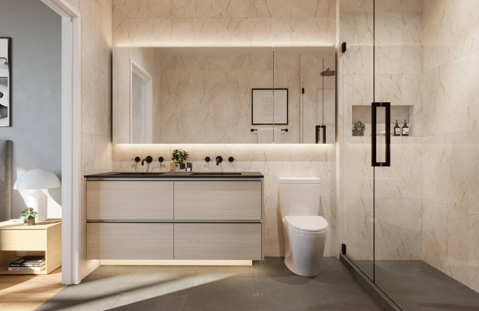 Inside W16’s attractive residences, you’ll discover homes where design excellence is evident in every detail. Sophisticated kitchens inspire creativity with sleek Miele appliances and Stosa cabinetry provided by Informprojects offers versatility, including open shelving to ensure everything has a place and a purpose.