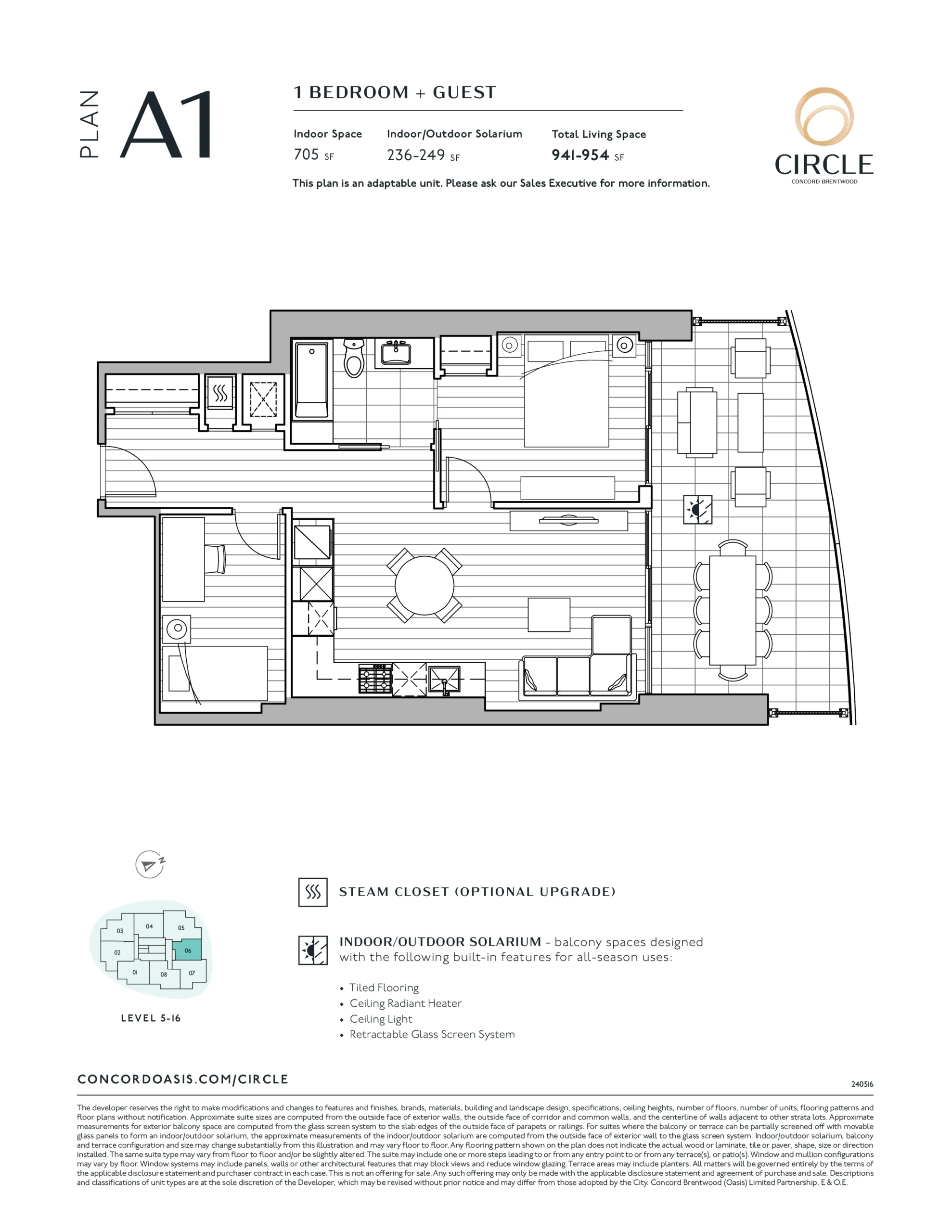 INDOOR: 705 SF INDOOR/OUTDOOR SOLARIUM: 236 - 249 SF