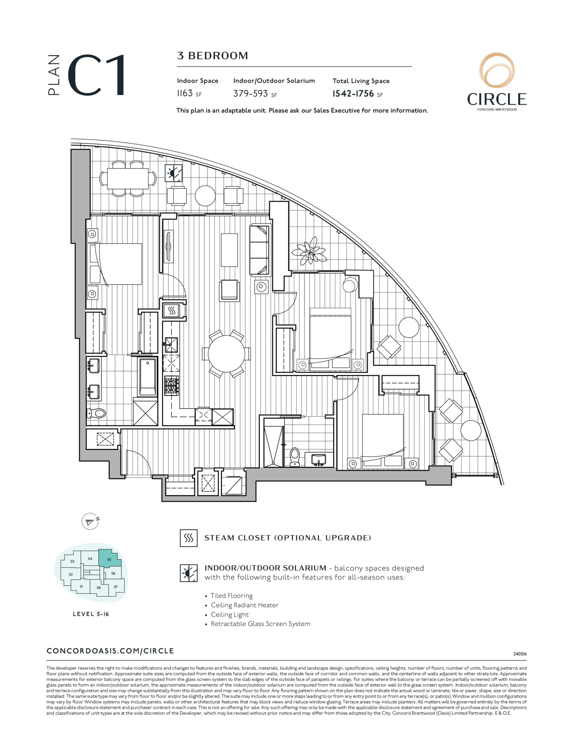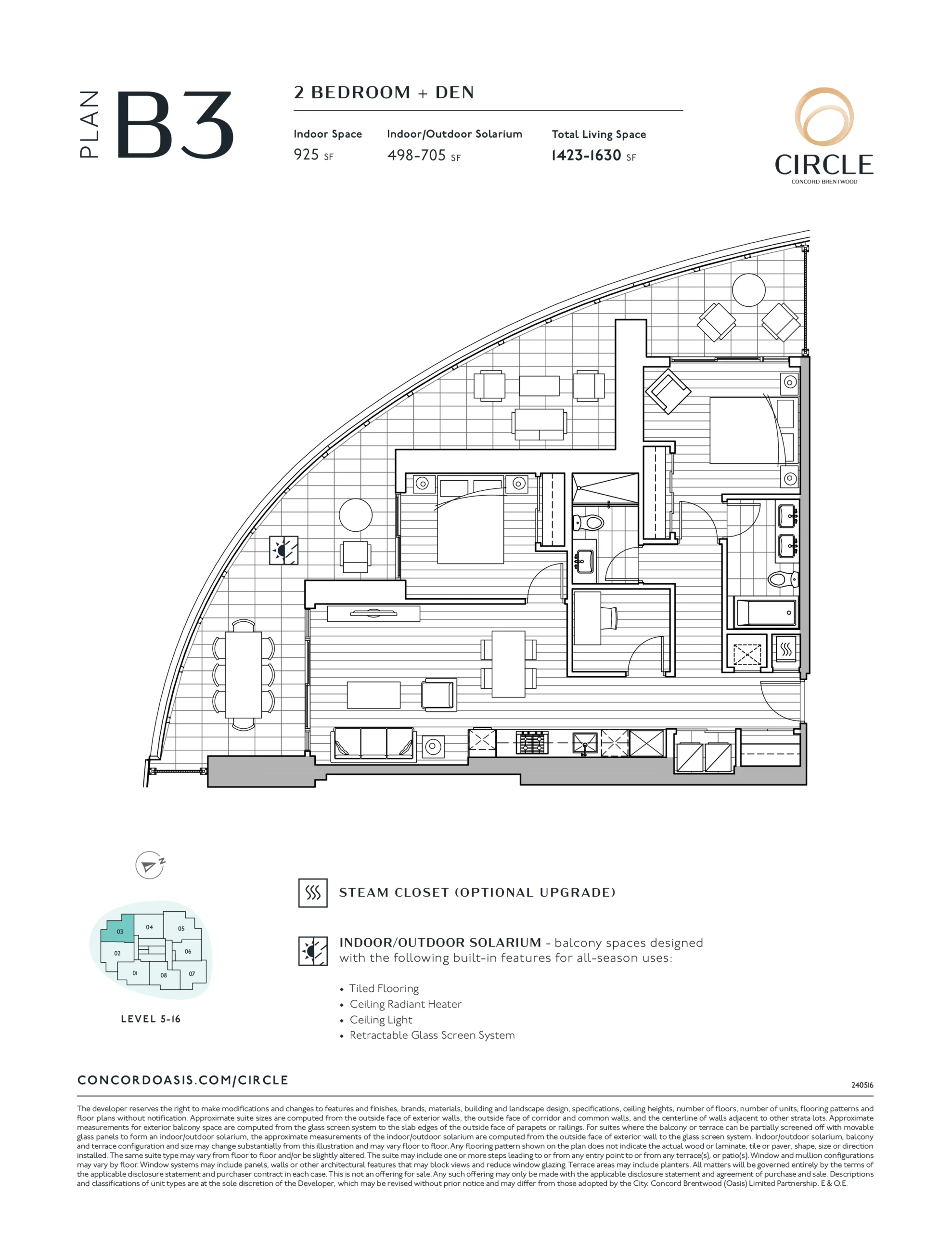 INDOOR: 1,163 SF INDOOR/OUTDOOR SOLARIUM: 379 - 593 SF
