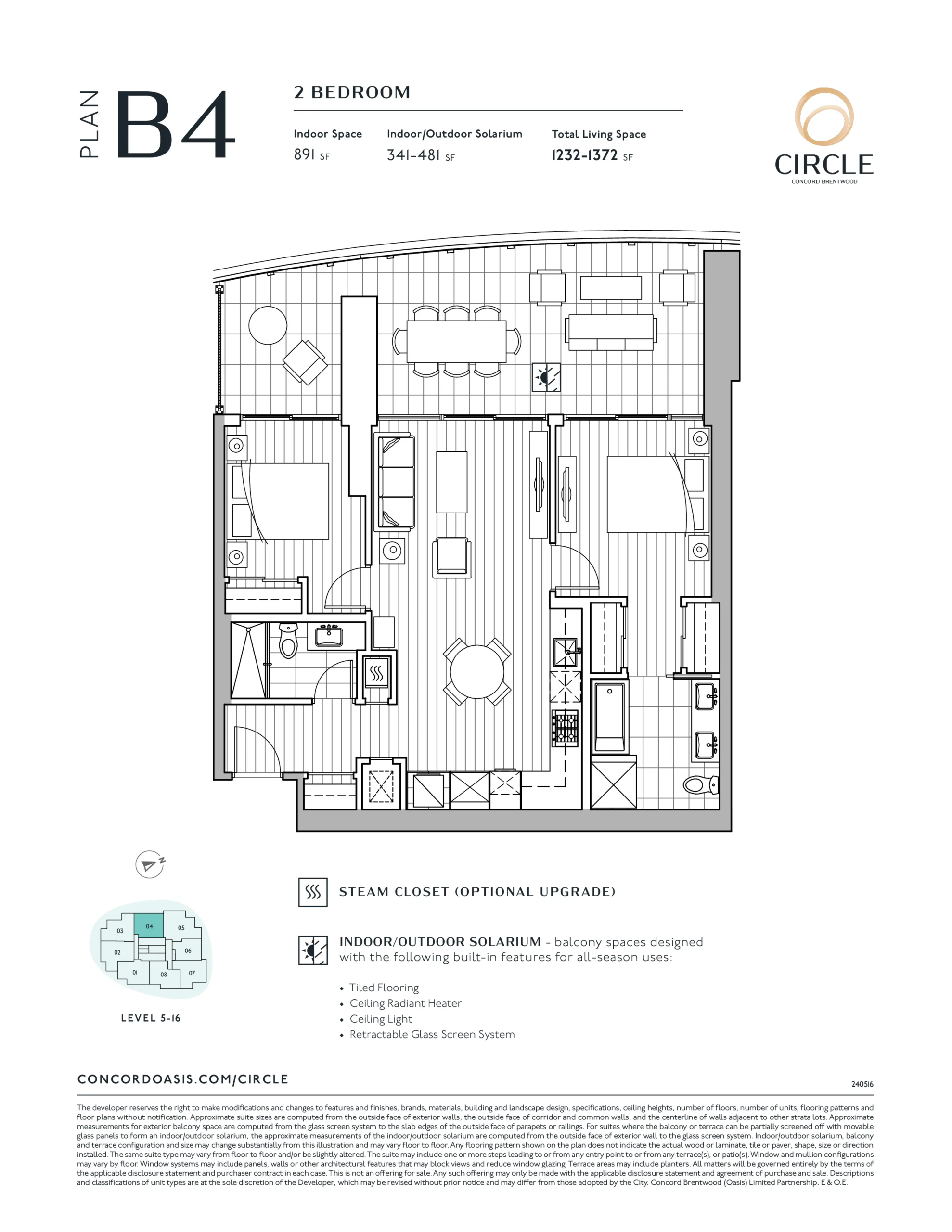 INDOOR: 891 SF INDOOR/OUTDOOR SOLARIUM: 341 - 481 SF