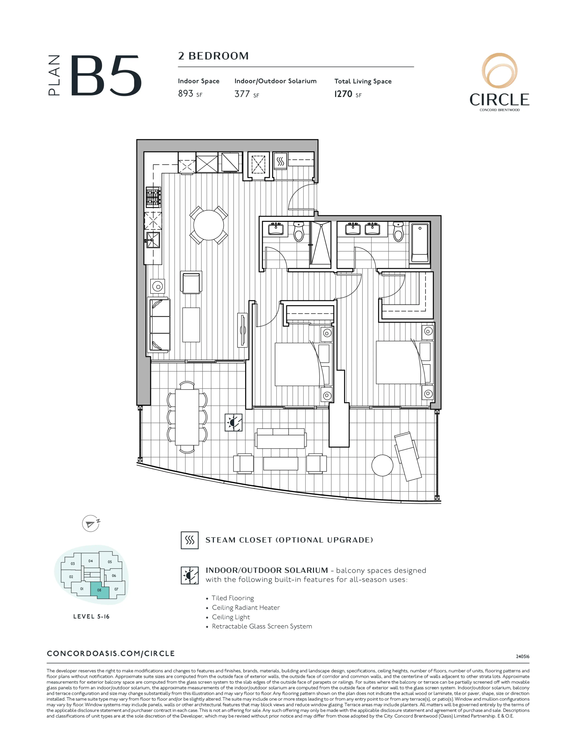 INDOOR: 893 SF INDOOR/OUTDOOR SOLARIUM: 377 SF
